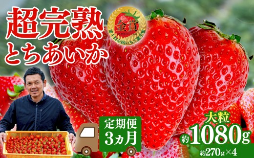 いちご<定期便3回>第1回いちご選手権 金賞受賞 とちあいか 大粒 約270g × 4パック 合計 約1080g | いちご イチゴ 苺 とちあいか 完熟 果物 フルーツ くだもの 旬 産地直送 栃木県産 美土里農園 栃木県 茂木町