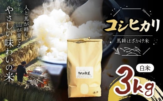 - 新米 令和7年産 林業会社のお届けする山の恵み 馬耕はざかけ米〈自然栽培コシヒカリ〉【白米】3kg | お米 白米 玄米 ご飯 馬耕 こしひかり3kg 信州 長野県 松本市 松本市 ふるさと納税