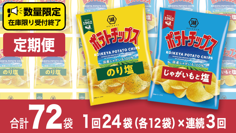- 【 湖池屋 3ヶ月 定期便 】 湖池屋 ポテトチップス 2種類アソート (のり塩・じゃがいもと塩)(各12袋・計24袋 ×3回) ポテチ お菓子 おかし 大量 スナック おつまみ ジャガイモ じゃがいも まとめ買い スナック菓子 頒布会 数量限定 [DA046us]