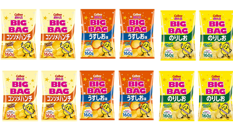 カルビー ポテトチップス BIGBAG 160g 3種 各4袋セット (計 12袋 ) うすしお ・ のりしお ・ コンソメパンチ ポテチ お菓子 おかし 大量 スナック おつまみ ジャガイモ じゃがいも まとめ買い 数量限定 [DA004us]