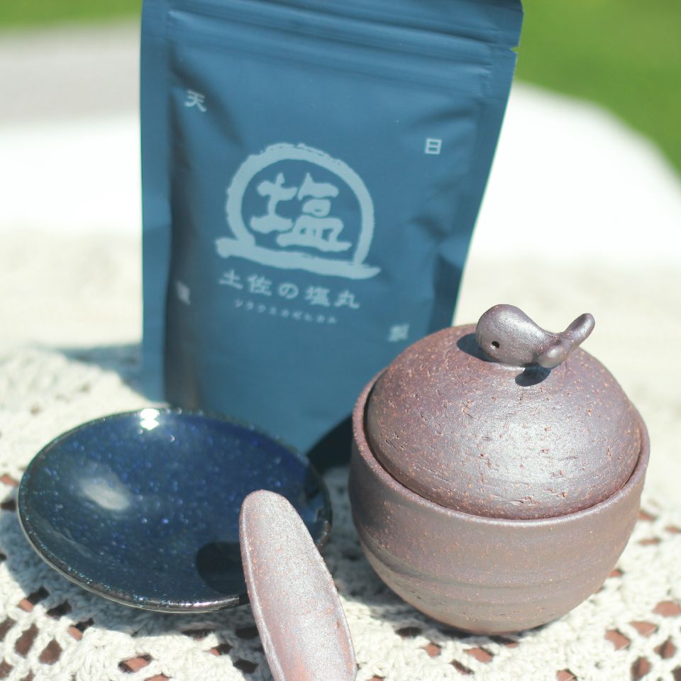 - 【ふるさと納税】 塩壷 塩さじ 豆皿 天日海塩 セット クジラの塩壷 ギフト 贈り物 プレゼント 食器 お皿 陶器 調味料入れ キッチン雑貨 塩入れ 塩 調味料 高知県 高知県 黒潮町