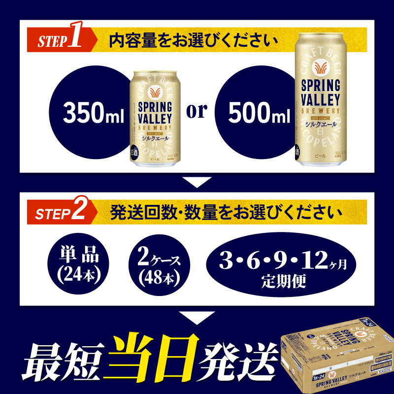 - 【ふるさと納税】 キリン スプリングバレー シルクエール 選べる 容量 回数 350ml 500ml 24本 48本 白 定期便 クラフトビール 麒麟 KIRIN ビール 3回 6回 9回 12回 お酒 ケース 缶ビール 酒 アルコール BBQ バーベキュー 晩酌 定番 キャンプ お歳暮 ギフト 贈答 滋賀 彦根