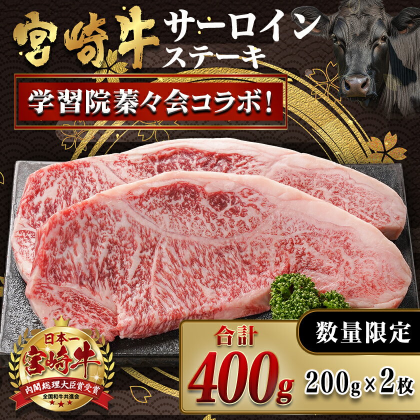- 【ふるさと納税】学習院蓁々会コラボ☆宮崎牛サーロインステーキ200g×2枚 - 都城産宮崎牛 サーロインステーキ 200g×2 牛肉 塩コショウ・ステーキソース付き ステーキ 贈答用 数量限定 学習院蓁々会コラボ 送料無料 33-N401【宮崎県都城市は2年連続ふるさと納税日本一!】