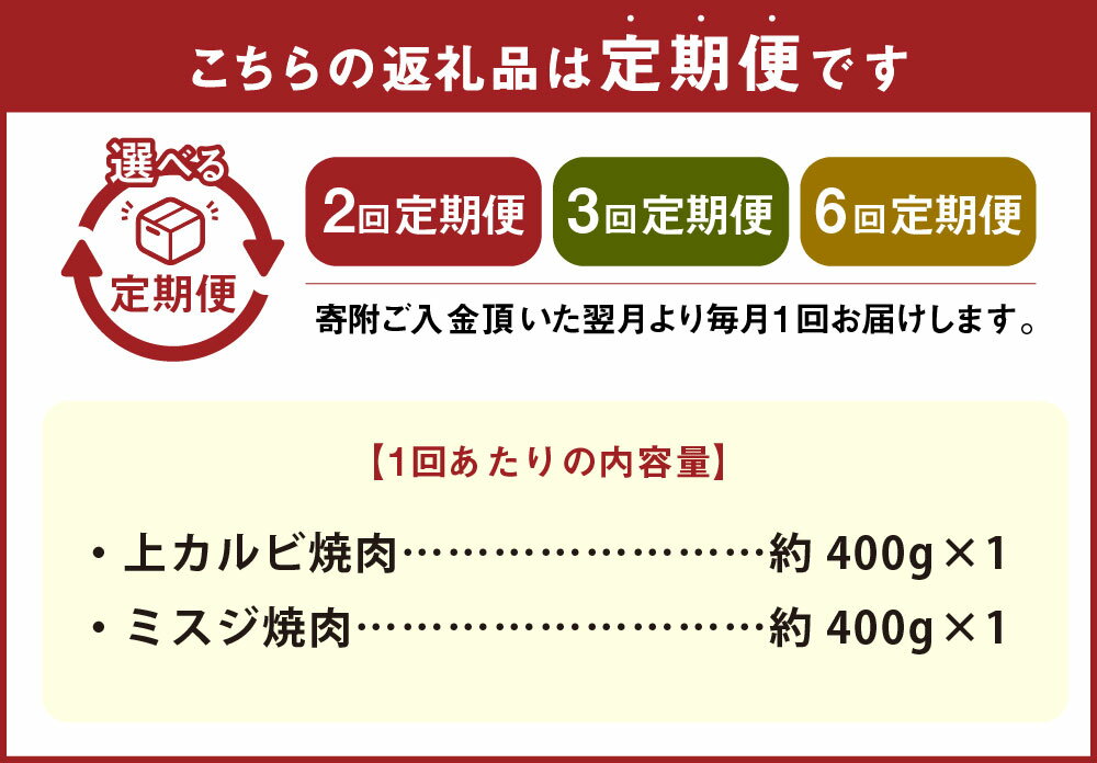- 【ふるさと納税】<選べる定期便>【上カルビVSミスジ食べ比べ!】おおいた和牛 上カルビ焼肉・ミスジ焼肉 セット 1回あたり計約800g(各約400g) 1ヶ月毎 2回 3回 6回 牛肉 お肉 みすじ バラ肉 カイノミ フランク ゲタ 希少部位 焼き肉 冷凍 国産 大分県産 竹田市 送料無料
