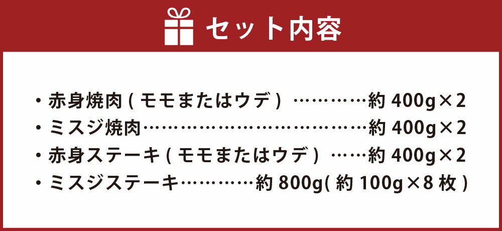 - 【ふるさと納税】【焼肉?ステーキ?赤身とミスジを味わう!】おおいた和牛 赤身焼肉・ミスジ焼肉・赤身ステーキ・ミスジステーキ 4種セット 計約3.2kg(各約800g×4種) 和牛 牛肉 お肉 モモ ウデ みすじ 希少部位 焼き肉 冷凍 大分県産 国産 大分県 竹田市 送料無料
