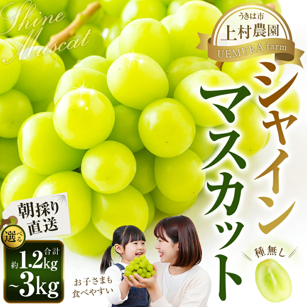【ふるさと納税】<選べる容量>【先行予約】上村農園 (ハウス)シャインマスカット (2~3房 (約1.2kg) / 4~6房 (約2kg) / 5~8房 (約3kg) ) 【2026年7月下旬~8月上旬より順次発送予定】 ぶどう 葡萄 マスカット フルーツ 果物 冷蔵 送料無料 福岡県 うきは市