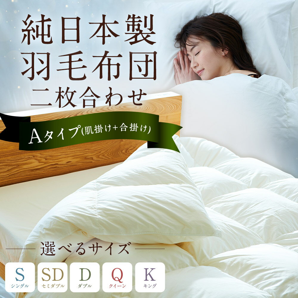 - 【ふるさと納税】<選べるサイズ>純日本製 羽毛布団 二枚合わせAタイプ(肌掛け+合掛け) 和雲アイダーモデル シングル / セミダブル / ダブル / クイーン / キング アイダーダウン かけ布団 掛布団 掛けぶとん ふとん 寝具 福岡県 筑後市 送料無料