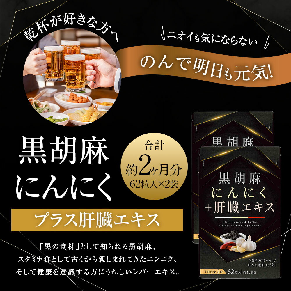 - 【ふるさと納税】黒胡麻にんにくプラス肝臓エキス 2袋セット 1袋29.14g(470mg×62粒) 計58.28g(2袋) 合計約2ヶ月分 黒ゴマ 無臭にんにく ニンニク レバーエキス 肝臓エキス サプリメント 健康食品 福岡県 直方市 送料無料