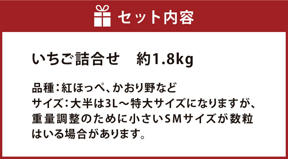 - 【ふるさと納税】いちご詰合せ 普通箱 約1.8kg 倉敷産 紅ほっぺ かおり野 詰め合わせ 岡山県産 果物 フルーツ 甘み 酸味 酸味少なめ さわやか おやつ 岡山の苺 【2025年12月上旬~2026年3月下旬迄順次発送予定】