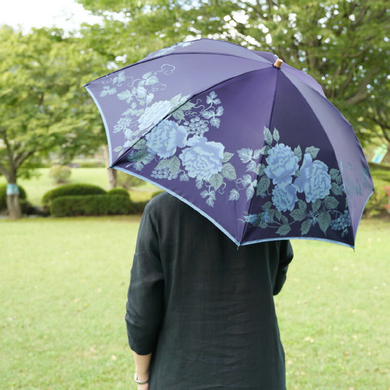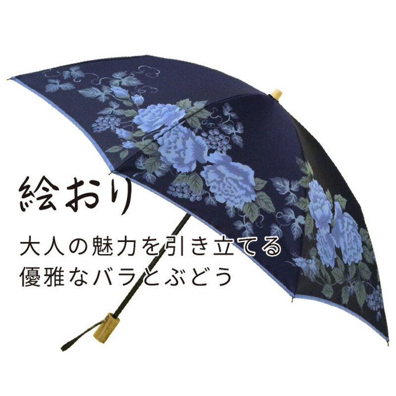 - 【ふるさと納税】【槙田商店】晴雨兼用折りたたみ傘 絵おり バラとぶどう ネイビー|送料無料 槙田商店 傘 雨傘 おしゃれ レディース 贈答 プレゼント ギフト 母の日 誕生日 日本製 女性 長傘 晴雨兼用 ブランド 高品質 婦人用 日傘 UV加工