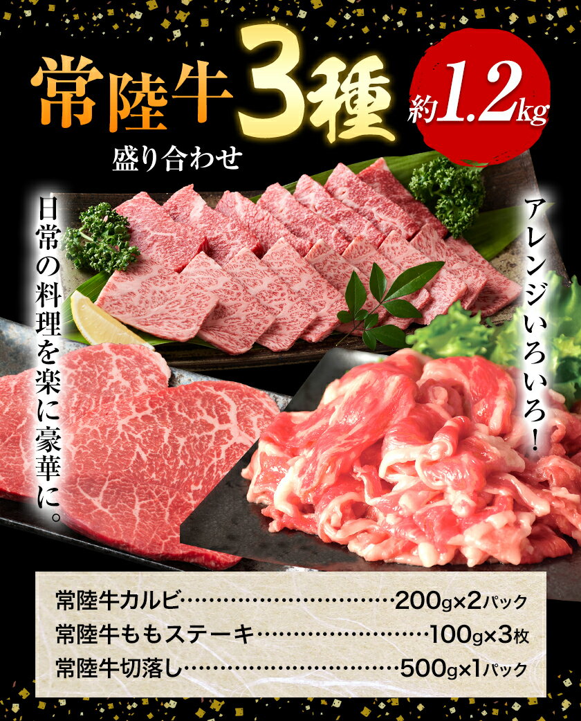 - 【ふるさと納税】常陸牛 3種 盛り合わせ カルビ ももステーキ 切り落し ワークミート《30日以内に出荷予定(土日祝除く)》茨城県 河内町 常陸牛 和牛 焼肉 ステーキ もも肉 切り落とし 牛肉 牛