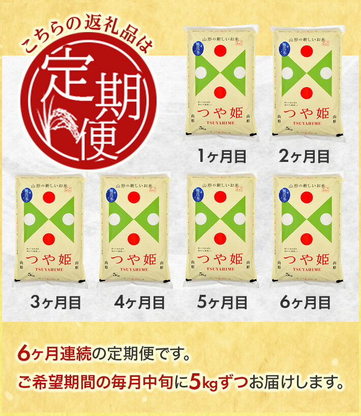 - 【ふるさと納税】≪6ヶ月定期便≫ 無洗米 特別栽培米 つや姫 5kg×6ヶ月連続 計30kg 山形県庄内産 ご希望期間の毎月中旬頃にお届け 米 お米 精米 白米 定期便 ブランド米