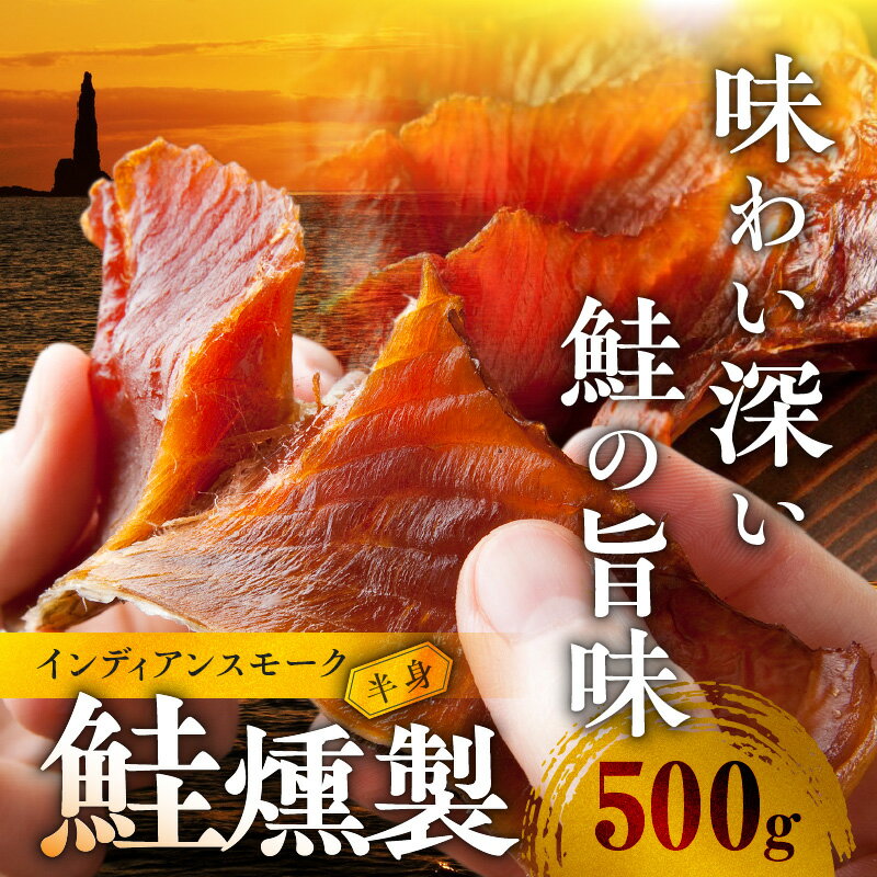 - 【ふるさと納税】インディアンスモーク 500g 鮭半身 の 燻製 おつまみ 酒の肴 鮭 魚介類 珍味 贈答 ギフト お取り寄せ 北海道 余市町 送料無料