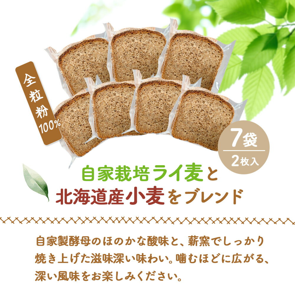 - 【ふるさと納税】奥土農場の薪窯焼全粒粉100% 1本(2枚入り×7袋) | 全粒粉 パン 自家製 酵母 ライ麦 道産小麦 窯焼 低糖質 保存料不使用 添加物不使用 手土産 お取り寄せ 北海道 ニセコ町【42028】