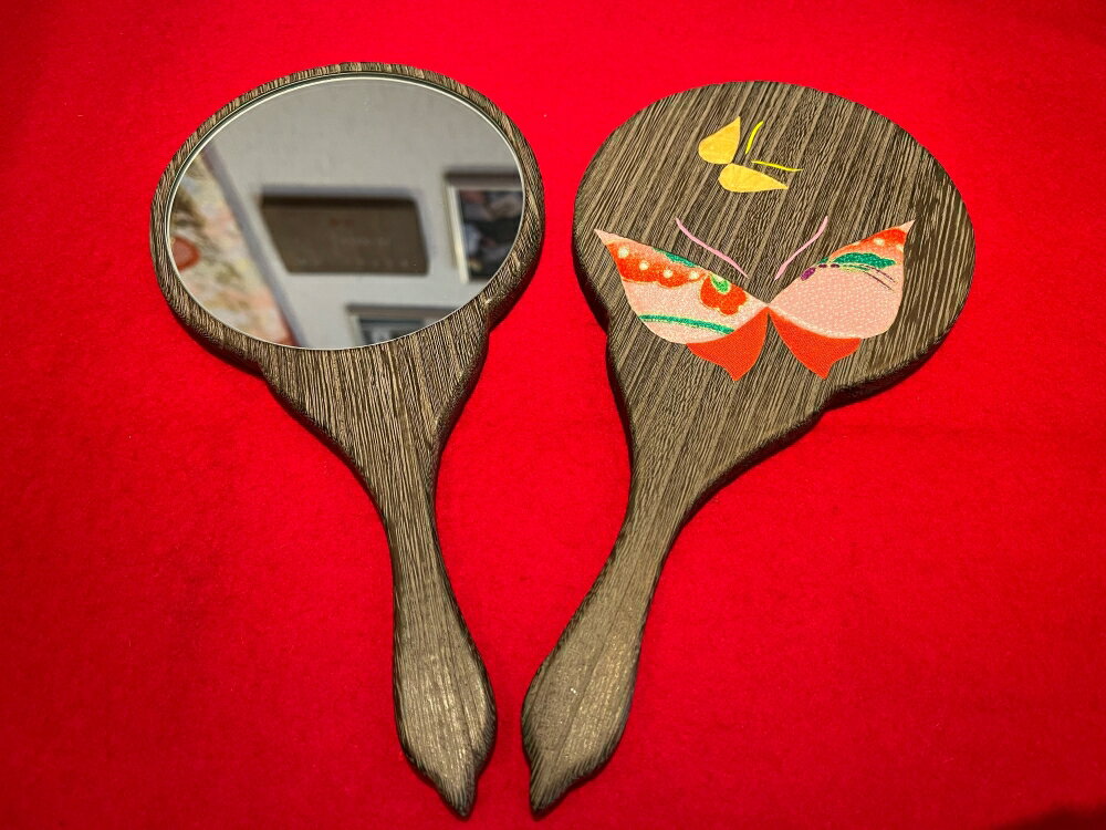 - 【ふるさと納税】【箱長】手鏡(中) 選べる柄 鈴 蝶 ミラー ハンドミラー コンパクトミラー 鏡 桐 木製 和風 伝統工芸品 おしゃれ 贈答 ギフト