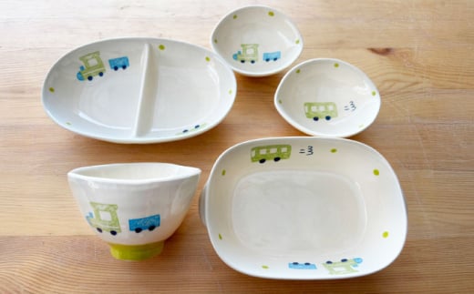 - 【瀬戸焼】子供用食器5点セット (汽車・バス)贈答品対応【窯元SOUSEN】/ 食育 出産祝い 子供用食器 食器セット 子育て ギフト [BBCQ006]