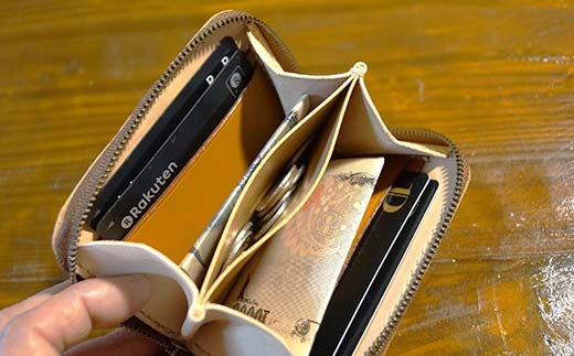 - 本革製ラウンドファスナーミニウォレット グリーン F6L-1292