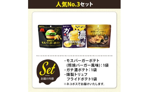 - <訳あり セットが選べる!> お試し 訳アリ じゃがスナック 【アソート・人気No.3セット】 (3袋・1袋最大50g) ポテト モスバーガー ガチ濃 トリュフ【man225-A】【味源】