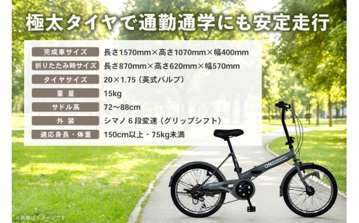 - 折りたたみ自転車 オンボーダー20インチ外装6段変速(マットグレー)【折り畳み コンパクト 通勤 通学 シマノ製 6段変速 LED オートライト 極太タイヤ】K025003