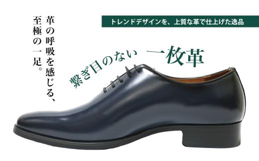 - 【D5500 ネイビー】26.0cm ホールカット(一枚革)ドレスシューズ