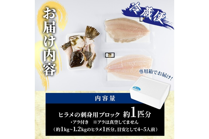 ヒラメ 刺身用 ブロック 冷蔵(1匹分・4-5人前) ヒラメ ひらめ 鮃 神経締め 獲れたて 鮮魚 ブロック 刺身 冷蔵 海の直売所 大分県 佐伯市【AS135】【海べ】