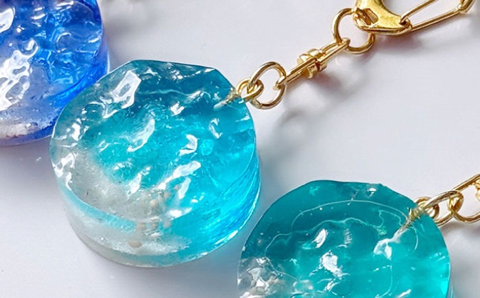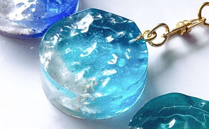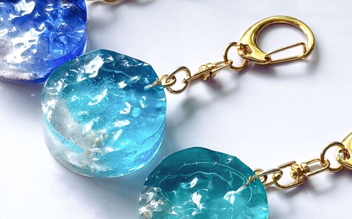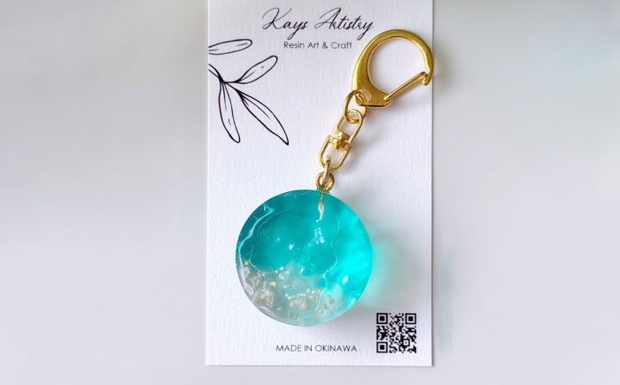 レジンアート 『海のかけらキーホルダー』 丸型 アクアブルー 【沖縄の星の砂入り】キーホルダー レジンアート 海 雑貨 おしゃれ 沖縄市 / Kays Artistry[BCAG025]