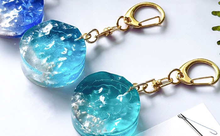 レジンアート 『海のかけらキーホルダー』 丸型 ターコイズ 【沖縄の星の砂入り】キーホルダー レジンアート 海 雑貨 おしゃれ 沖縄市 / Kays Artistry[BCAG026]