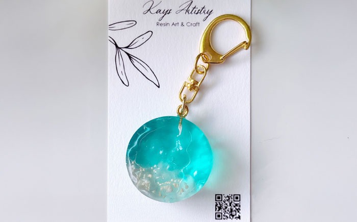 - レジンアート 『海のかけらキーホルダー』 丸型 ターコイズ 【沖縄の星の砂入り】キーホルダー レジンアート 海 雑貨 おしゃれ 沖縄市 / Kays Artistry[BCAG026]