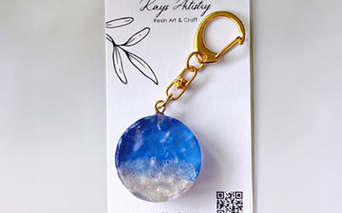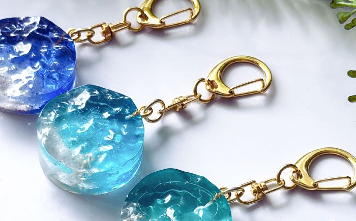 レジンアート 『海のかけらキーホルダー』 丸型 ブルー 【沖縄の星の砂入り】キーホルダー レジンアート 海 雑貨 おしゃれ 沖縄市 / Kays Artistry[BCAG027]