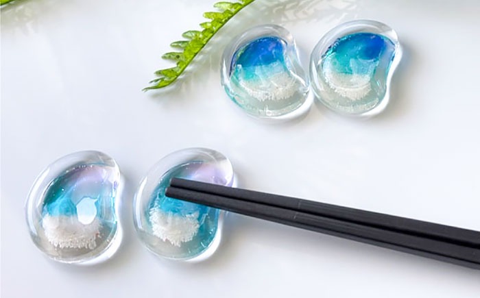 - レジンアート 『海の煌き 箸置き』 アクアブルー × パープル 2個セット はしおき はし置き レジンアート 海 ハンドメイド 雑貨 おしゃれ 沖縄市 / Kays Artistry[BCAG029]