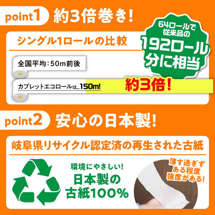 - 【ふるさと納税】【選べる発送月】トイレットペーパー 64ロール 3倍巻き 【シングル】 北海道・沖縄県・離島への配送不可 / 日用品 生活用品 エコ トイレットペーパー シングル 3倍巻き 64ロール 長尺 長持ち 備蓄 防災 消耗品 トイレ 岐阜市 / 河村製紙 [ANBJ014]
