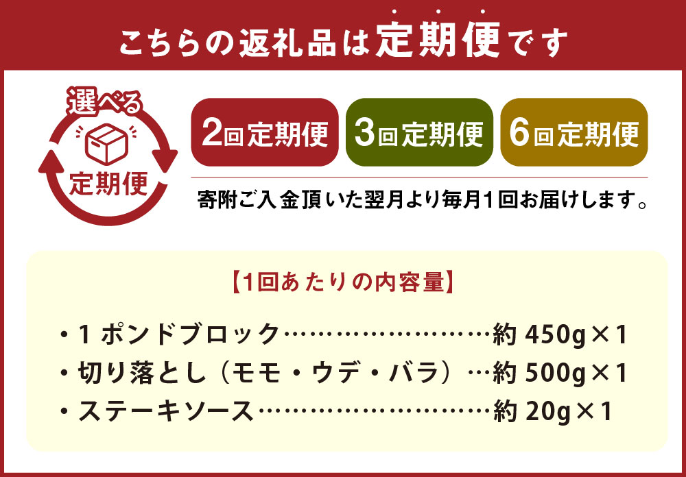 - 【ふるさと納税】<選べる定期便>【ブロック&切り落とし】おおいた和牛 1ポンドブロック(約450g)・切り落とし(約500g)セット ステーキソース付 1回あたり計約950g 1ヶ月毎 2回 3回 6回 和牛 牛肉 お肉 モモ ウデ バラ 赤身 冷凍 大分県産 国産 大分県 竹田市 送料無料