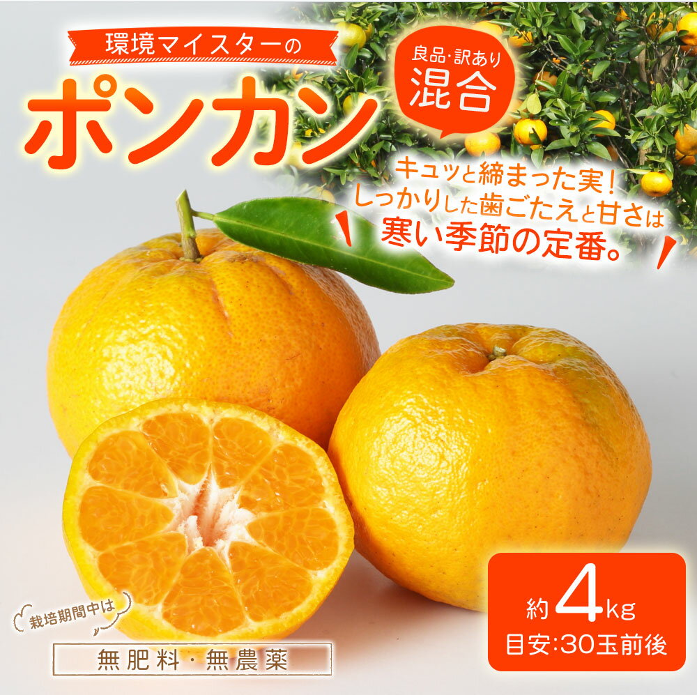 【ふるさと納税】環境マイスターのポンカン 良品 訳あり 混合 約4kg 30玉前後 (栽培期間中は無肥料・農薬不使用) ポンカン みかん ミカン 蜜柑 果物 国産 九州産 熊本県産 送料無料【2026年1月下旬‐3月上旬迄順次発送予定】