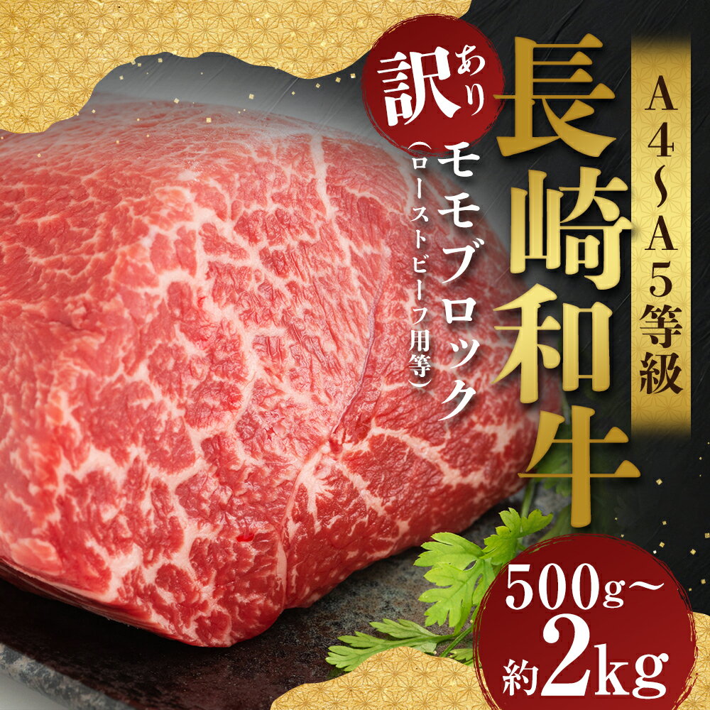 【ふるさと納税】<選べる内容量>【訳あり】【A4~A5】長崎和牛 モモブロック(ローストビーフ用等) 1 / 2 / 3 / 4パック 1パック約500g 約500~600g・計約1kg・計約1.5kg・計約2kg 黒毛和牛 牛肉 お肉 もも肉 赤身 霜降り 冷凍 長崎県産 国産 九州 長崎県 時津町 送料無料