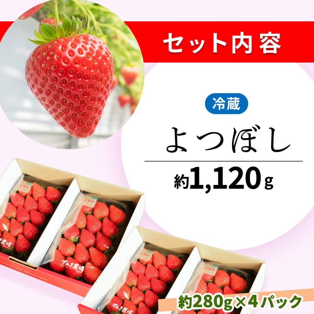 【ふるさと納税】【先行受付 2026年1月より発送】【農場直送!】よつぼし(約280g×4P)【ふるさと納税 基山町産 いちご イチゴ 朝採れ 完熟果】K100002