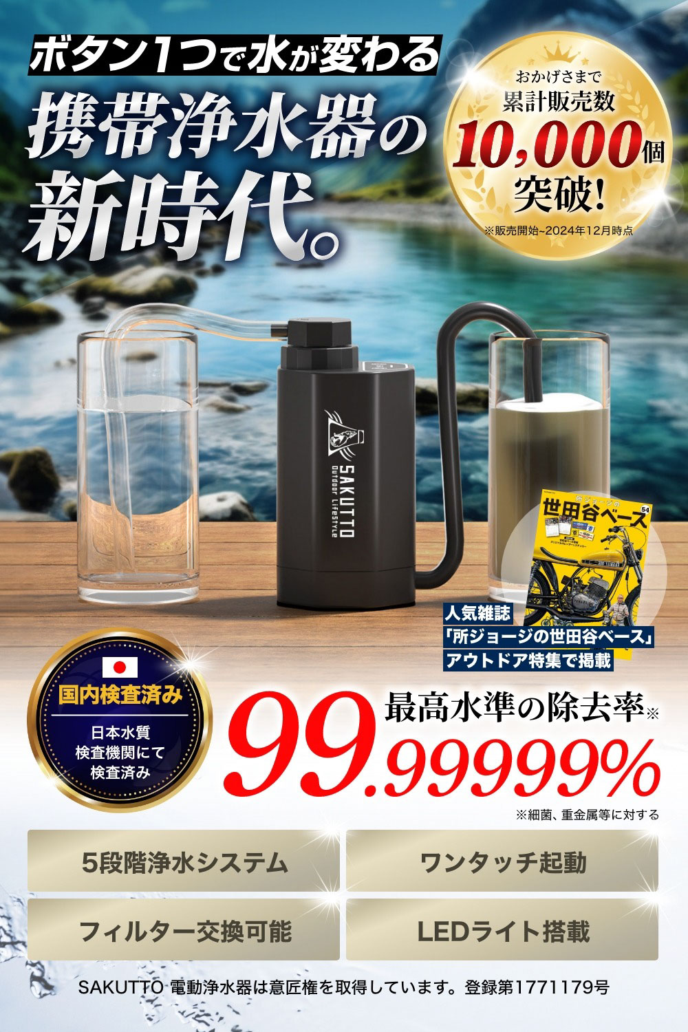 【ふるさと納税】SAKUTTO 電動式 携帯浄水器 1セット 日本正規品 キャンプ用品 浄水器 アウトドア 登山用品 サバイバル (アウトドア向けデザイン) キャンプ 登山 携帯用浄水器 浄水器 濾過器 災害 電動式 携帯ろ過器 防災用 非常用浄水器 防災グッズ 福岡県北九州市