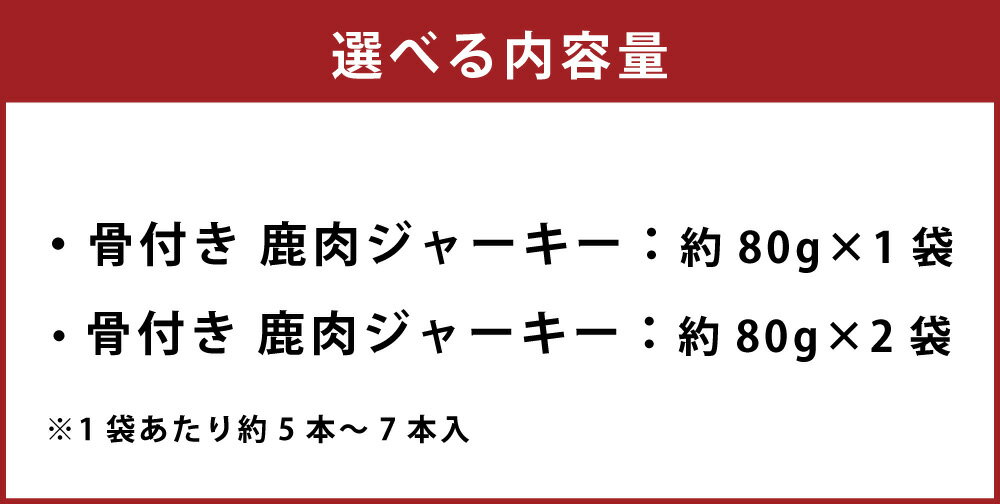 - 【ふるさと納税】<選べる内容量>【骨付き 鹿肉ジャーキー】高知県産 天然鹿肉100% 数量限定 計約80g 計約160g 1袋あたり約5本~7本入 鹿肉 お肉 あばら骨 肋骨 中型犬 ~ 大型犬 犬用 ペットフード ドッグフード おやつ 国産 高知県 香美市 送料無料