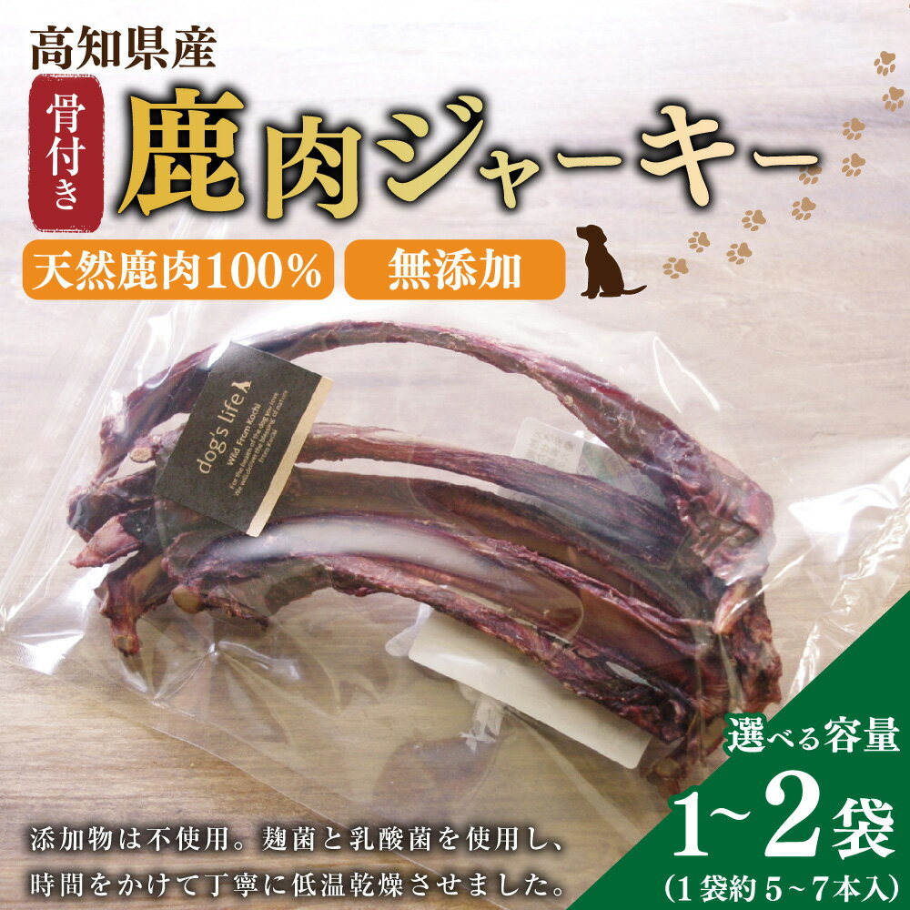 【ふるさと納税】<選べる内容量>【骨付き 鹿肉ジャーキー】高知県産 天然鹿肉100% 数量限定 計約80g 計約160g 1袋あたり約5本~7本入 鹿肉 お肉 あばら骨 肋骨 中型犬 ~ 大型犬 犬用 ペットフード ドッグフード おやつ 国産 高知県 香美市 送料無料