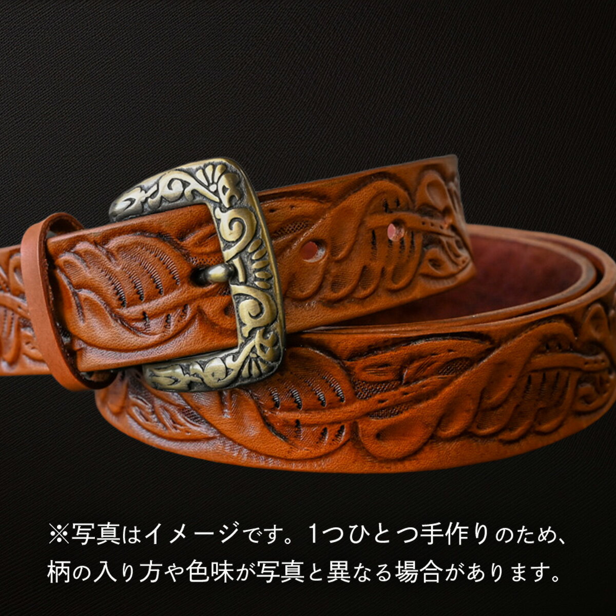 - 【ふるさと納税】【数量限定】牛革ベルト (アンティーク・茶染め) 【太さ30mm、厚さ3.7mm、長さがMサイズ(110cm) or Lサイズ(130cm)】 牛革 牛 革 皮 ベルト 手作り ハンドメイド 花柄 父の日
