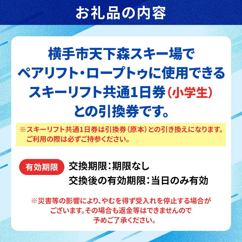 - 【ふるさと納税】横手市天下森スキー場 スキーリフト共通1日券(小学生)引換券 ゆうパケット