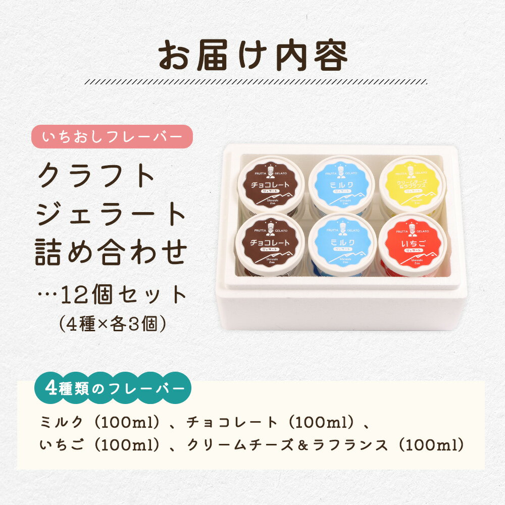 - 【ふるさと納税】いちおしフレーバー クラフトジェラート 詰め合わせ 12個セット 4種×各3個 | ジェラート 地元 野菜 果物 手作り スイーツ クラフトアイス こだわり ミルク チョコレート いちご クリームチーズ ラフランス ご当地 お取り寄せ 宮城県 白石市 白石【14155】
