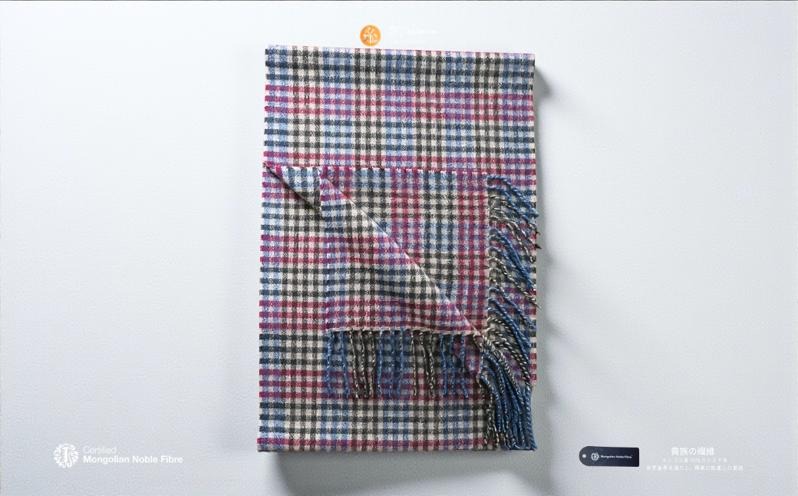 - G3565 『Noble Fibre』100%カシミヤ・マフラー レッド&チェック フリンジ付き