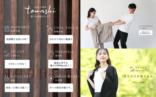 美濃和紙を使用したユニセックススーツ【サイズ03 ベージュ】 【着るだけで垢抜ける!】洗濯機OK!UVカット!接触冷感!速乾!耐久性!岐阜製towashiユニセックススーツ ジャージー素材 日本製 岐阜市 / ホワイトジョーラ [ANEI001-7]