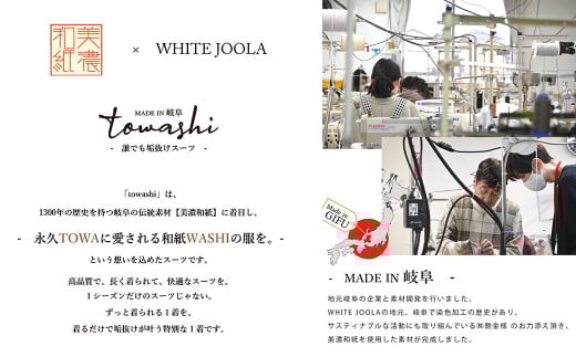 - 美濃和紙を使用したユニセックススーツ【サイズ03 ベージュ】 【着るだけで垢抜ける!】洗濯機OK!UVカット!接触冷感!速乾!耐久性!岐阜製towashiユニセックススーツ ジャージー素材 日本製 岐阜市 / ホワイトジョーラ [ANEI001-7]