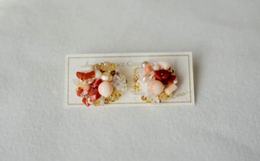 - 【宝石珊瑚】 (選べる) 赤、白、ピンク珊瑚の刺繍ピアス イヤリング 【株式会社ケンセン35】 [ATAR050-01]