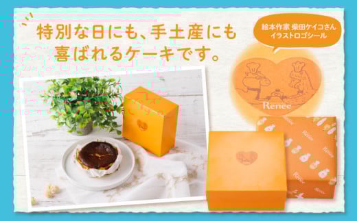 文旦バスクチーズケーキ 絵本作家柴田ケイコさんデザイン キャラクターステッカー3枚付き 直径12cm (1ホール) / 冷凍 チーズケーキ チーズ ケーキ 手作り スイーツ デザート【菓子工房レネー】 [ATDE006]