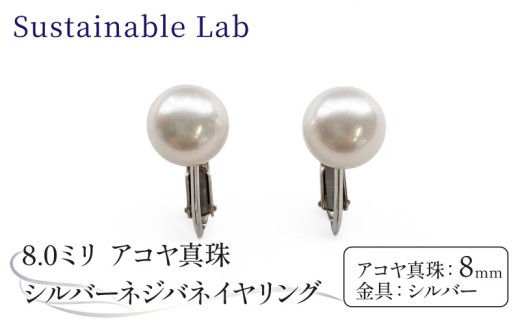 真珠 イヤリング 8.0mm SV シルバー アコヤ真珠 アクセサリー ファッション akoya パール フォーマル カジュアル プレゼント ギフト 贈り物 贈答品 お祝い 誕生日 記念日 冠婚葬祭 慶事 弔事 結婚式 卒業式 入学式 国産 三重県 伊勢 志摩 南伊勢町 / パールシルバーネジバネイヤリング8.0mm
