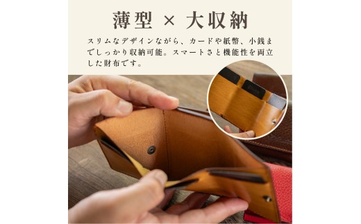 - 〈本革〉ベルギーレザー三つ折りのスリム財布 (キャメル・ 無料名入れ 刻印) 鍵ベルギーレザー 小銭入れ コンパクト財布 コインケース 財布 無料名入れ 刻印