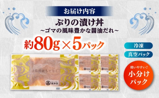 【高知県産】 ぶりのゴマ醤油だれ 漬け丼 約80g×5パック/ ブリ ぶり 鰤 醤油 タレ 漬け 魚 海鮮 丼ぶり 小分け パック 冷凍 【株式会社サンマリン】 [ATHA002]