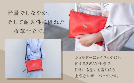 FORESENT WEDGE ルージュ|革のカシミヤ 鹿革 ショルダーポーチ 140000円 G0022a